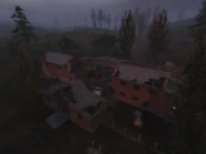 El aparcamiento está constituido por 4 edificios (La entrada, la casa, el garaje y el almacén), todos están deteriorados, también se encontrar varios vehículos destruidos.