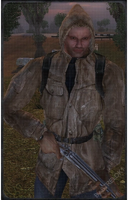 Petruhá va armado con un subfusil Viper 5 y posee un Traje de stalker.