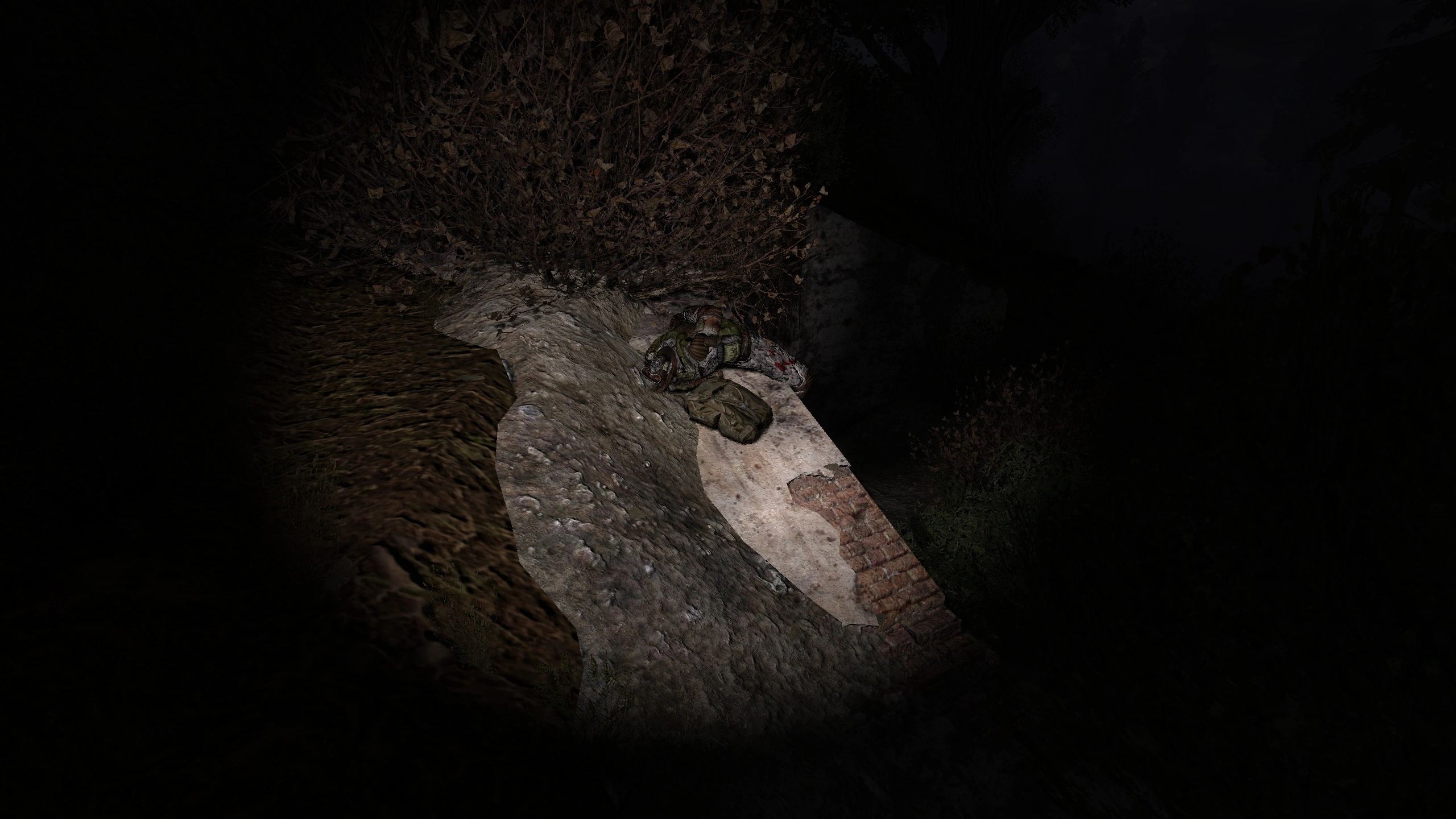 - Obok zwłok Stalkera, który opiera się o kamień, leży apteczka.