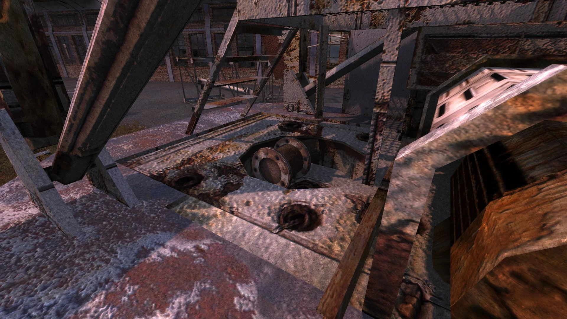 - Skład jest obecny we wczesnych buildach Cienia Czarnobyla. Tam nieco różni się od ostatecznej wersji: dach hangaru jest nienaruszony, w pobliżu nie ma dźwigu, a pod samym budynkiem była sieć tuneli i podziemnych połączeń. Również Burer mieszkał w samym hangarze (w niektórych buildach - Wojskowi lub Bandyci). Skład był wówczas magazynem.