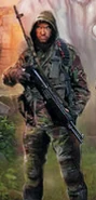 Snajper to zarówno pseudonim, jak i powołanie. Los Snajpera jest podobny do losu Naznaczonego, ponieważ opiera się na odczuciach z tego, co przeżył. Nie pamięta nic o sobie i próbuje dowiedzieć się więcej o sobie, stopniowo zbliżając się do centrum Zony, wiedząc, że tam odpowiedź będzie, ponieważ od urodzenia jest medium. Snajper umiejętnie radzi sobie z każdą bronią, strzelając do wrogów precyzyjnymi strzałami. Okazuje się, że ma pewien blok, który obejmuje dodatkowe informacje od właściciela. Snajper przybywa do Monolitu i wypowiada życzenie. Kryształ słabnie i oddaje swoją duszę Snajperowi - artefakt zwany "Czyste Niebo". Następnie emisje za każdym razem stają się coraz silniejsze. Cała planeta może stać się jedną Zoną. Snajper i Naznaczony zakładają grupę, w skład której wchodzą oni sami, Przewodnik, Wydra, Japończyk, Duch i Kieł, po czym idą do sarkofagu. Grupa leniwie walczy z Monolitem w pobliżu stacji, ale nie spotykają ich w sarkofagu. Charon jest wyraźnie zainteresowany zrobieniem tego samego. Snajper przekazuje artefakt Monolitowi i wszystko wraca na miejsce. W końcu Snajper i jego miłość opuszczają Zonę. Snajper i jego dziewczyna osiedlają się na wyspie, gdzie Snajper dostał pracę jako ochroniarz w tajnym kompleksie. Rok później jego miłość go opuszcza. Tego samego dnia wyspa została zaatakowana przez amerykańskie helikoptery. Ale Snajper zdołał uciec, zanim wyspa została zniszczona. Snajper postanawia wrócić do Zony. W Zonie Snajper spotyka Najemnika Szramę. Za obopólną zgodą decydują się znaleźć Naznaczonego, aby wspólnie zrozumieć sytuację. Ale Szrama zdradził go dwukrotnie i ostatecznie Snajper wylądował w Laboratorium X-8. W laboratorium Snajper zobaczył swoją miłość, przyjaciela Wydrę i Pułkownika Pietrenkę, którzy zostali umieszczeni w autoklawach. W zamian za dziewczynę Lebiediew zasugerował, że Snajper podaruje mu "brzytwę". Ale Zona postanowiła inaczej. Snajper mentalnie skontaktował się ze Szramą, a on, biorąc brzytwę, przeciął nią przestrzeń. Przestrzeń została otwarta i widoczny był w niej inny świat. Szrama posłał tam Lebiediewa i zamknął przestrzeń za nim brzytwą. Już w Prypeci Szrama, Snajper, Wydra, Pietrenko i Czterdziesta Piąta spotkali się z oporem Monolitu. Ale aby im pomóc, przybył oddział Diegtiariowa wraz z Leśnikiem i Szermierzem. W końcu Wojsko wraz ze Stalkerami wydostali się z Prypeci. Już w barze Snajper bierze ślub ze swoją miłością.