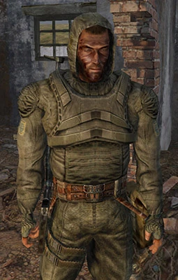 „Stalker urodzony pod szczęśliwą gwiazdą. Już niejeden raz wespół z towarzyszami wpadał w tarapaty, lecz zawsze jako jedyny uchodził z życiem. Większość stalkerów trzyma się od niego z daleka, gdyż twierdzą, że przynosi pecha. Już od dłuższego czasu samotnie przemierza Zonę.”
