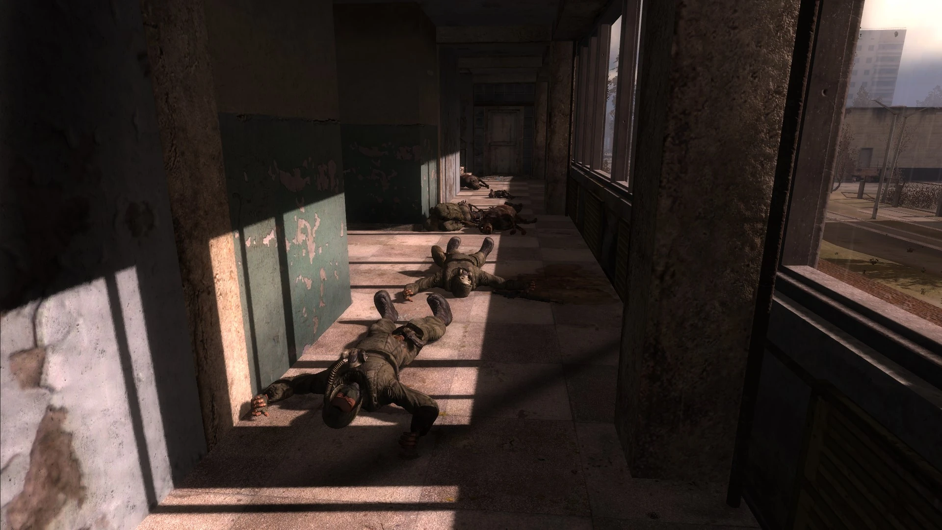 Istnieją dekoracyjne zwłoki, których nie można przeszukiwać ani nosić. Wiele zwłok ma tekstury z buildów; w Czystym Niebie na plecach wielu denatów można znaleźć plecak i go przeszukać. Niektóre zwłoki pojawiają się w nietypowych dla ich frakcji lokacjach. Na przykład zwłoki Monolitian na Kordonie lub Wielkich Bagnach.