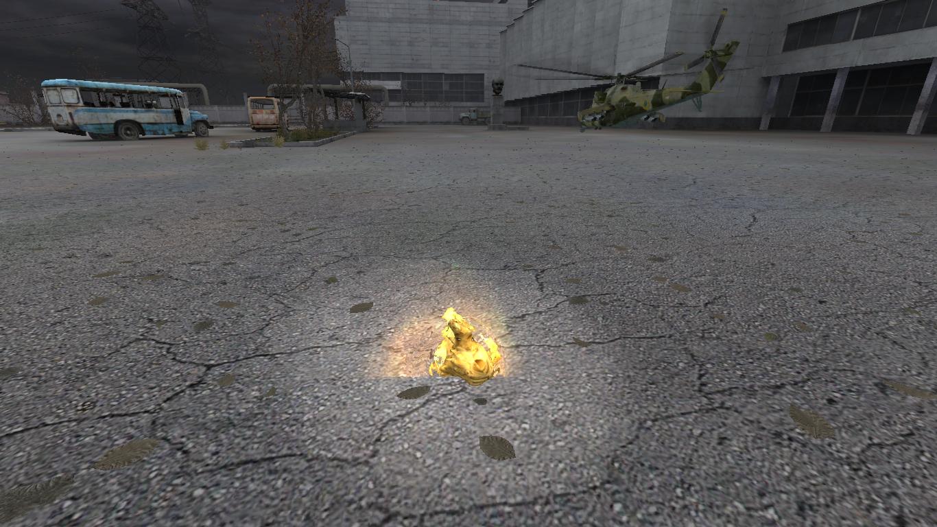 - ↑ В результате ошибки разработчиков с координатами области, один из артефактов иногда спавнится на крыше строения на берегу западного охладительного бассейна, откуда его теоретически возможно достать посредством взрывов гранат, но на практике определить его местоположение можно либо наудачу, либо при помощи консольной команды «demo_record 1». К тому же, на данном этапе игры данные махинации просто нецелесообразны.