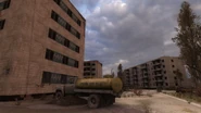 - Прачечная — лагерь военных (группа «Скат») в Припяти, уцелевших после крушения их вертолётов и сумевших добраться сюда. После эвакуации военных здание будет принадлежать вольным сталкерам.