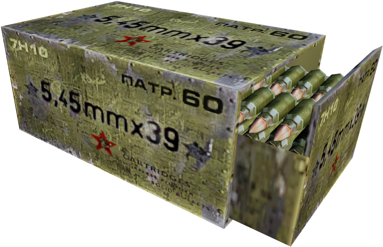 5.45x39mm 7N10 FMJ, simply known as 5.45x39mm rounds in-game, is a type of rifle ammunition featured in S.T.A.L.K.E.R.: Shadow of Chernobyl, S.T.A.L.K.E.R.: Clear Sky and S.T.A.L.K.E.R.: Call of Pripyat.