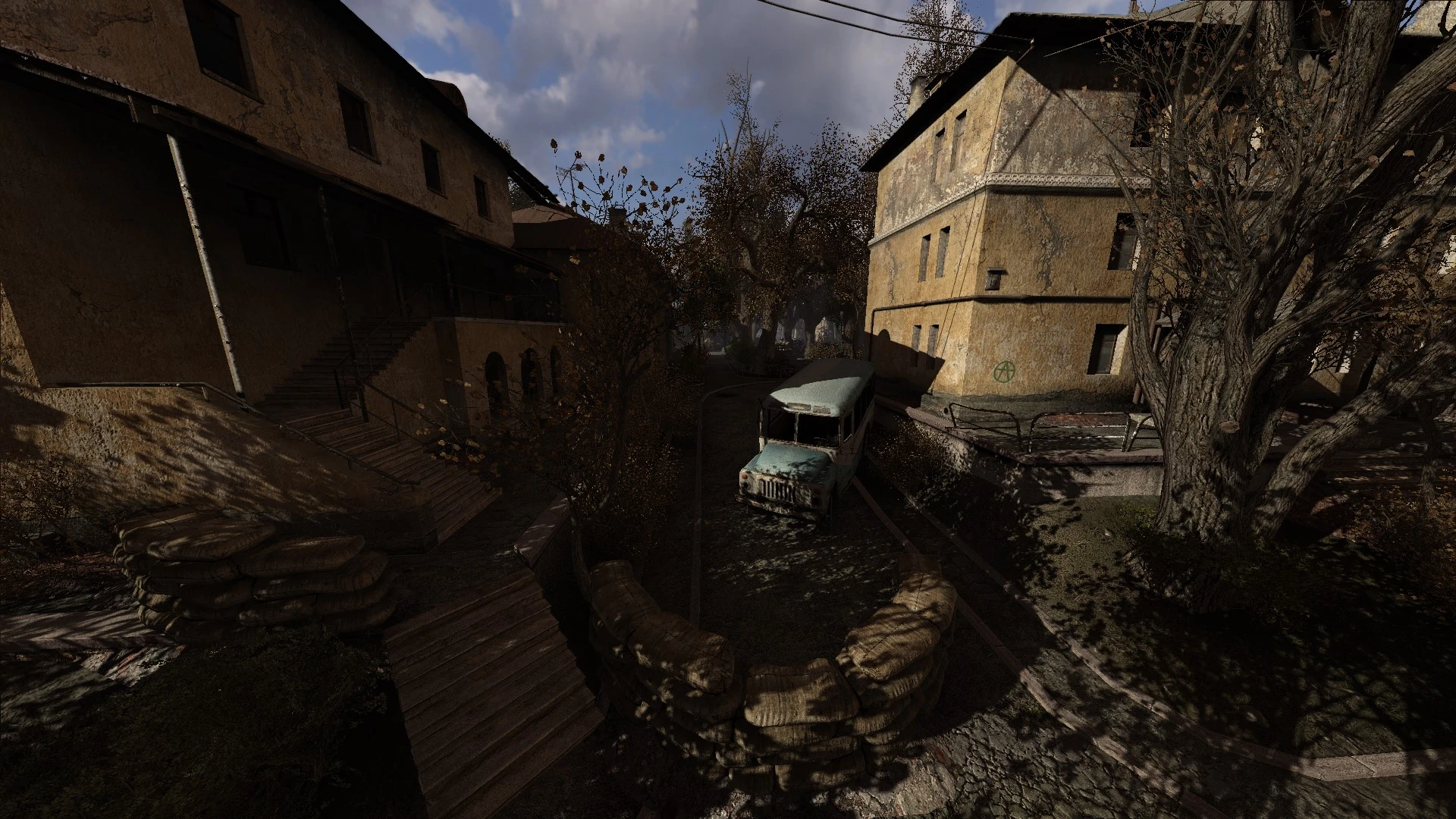 The player and Clear Sky will be ambushed at this location by a large number of Monolith forces coming from all sides of the intersection. The Monolithians must be defeated so that the Clear Sky squad may advance further in.