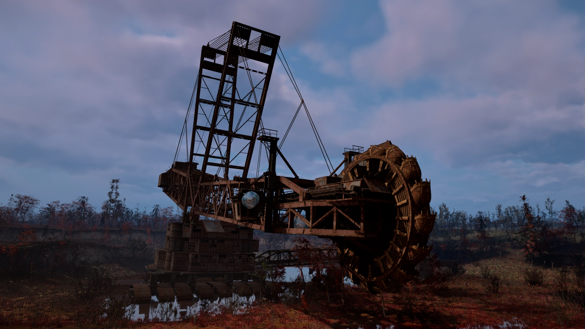 The Bucket-Wheel Excavator is a massive surface-mining excavator found in The area around Jupiter in S.T.A.L.K.E.R.: Call of Pripyat and in the Red Forest in S.T.A.L.K.E.R. 2: Heart of Chornobyl. It is likely based on the ERShRD-5000.