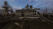 The farm house is only recognizable by the fire place (which holds the Small box inside stove stash), and lies on the south side of the area. Directly across the yard to the north is a watchtower with a metal box of supplies on top and a storage trunk at the base. Once Clear Sky takes over, the squad leader stands near the tower and may give you an optional mission. To the northwest of the tower is what's left of a building that still holds some treasures. The third build, which sits on the west side, is occupied by a Burner anomaly and radiation.