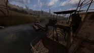 The Dredge station is comprised of an old dredging barge which has run aground in a small body of water in northeastern Zaton. Next to the barge is a floating platform littered with various objects, alongside a crane. The inside of the tug can be accessed from the rear; it has three accessible levels.