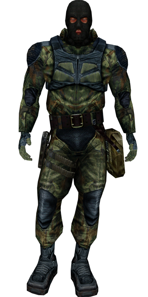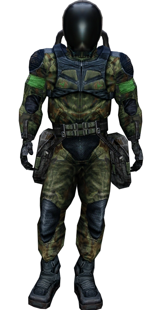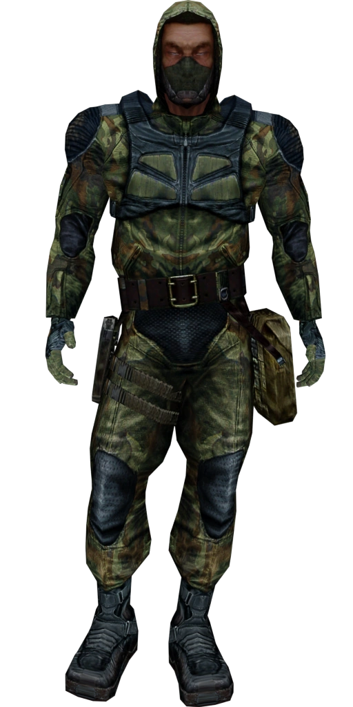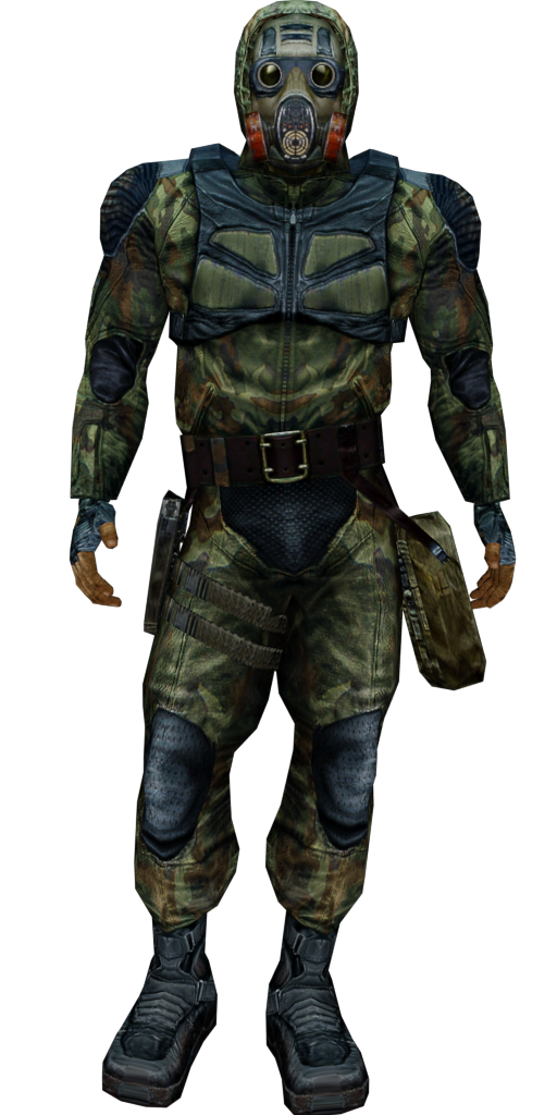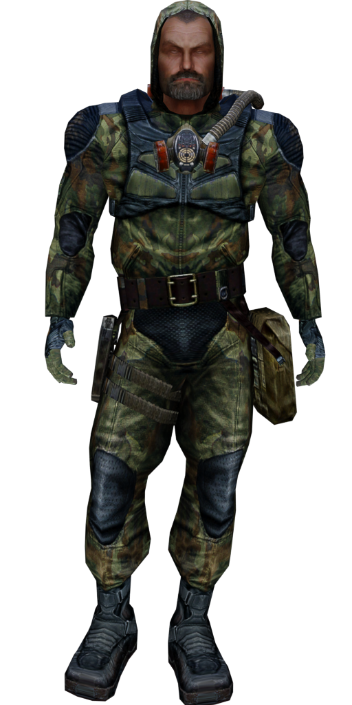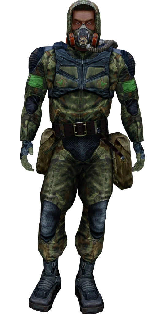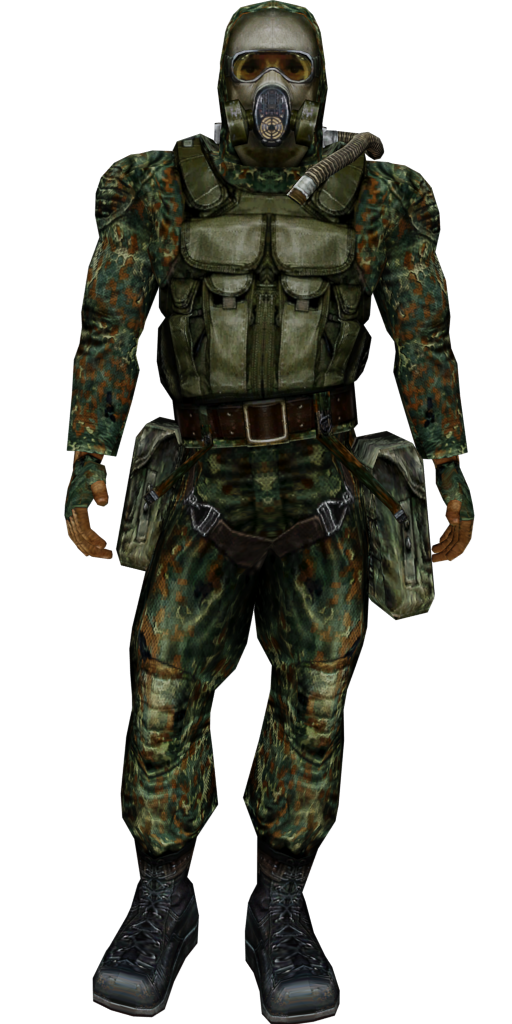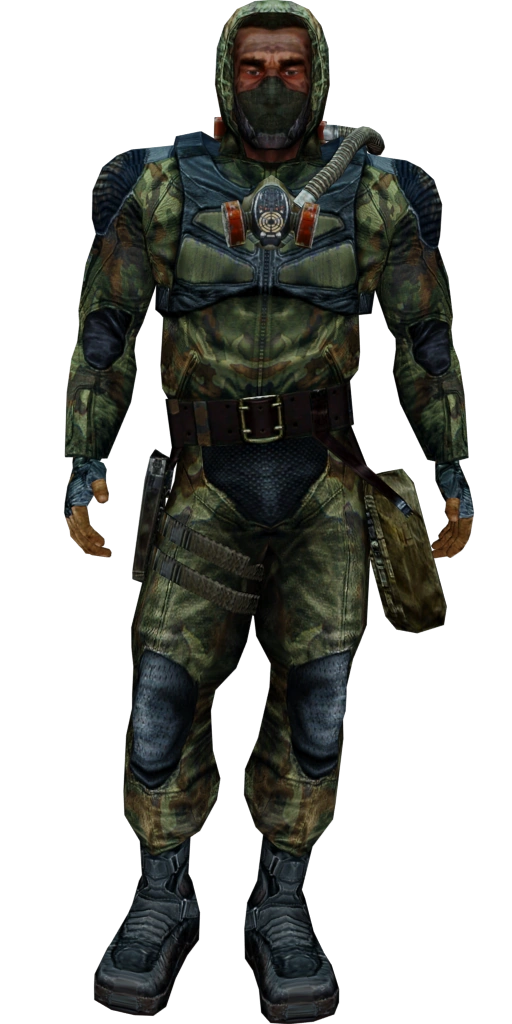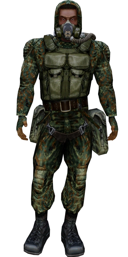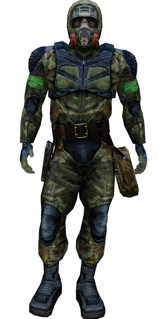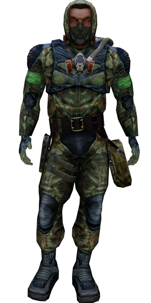 Equipment: Wind of Freedom suit and Guardian of Freedom suit. The former is made as a lightweight version of the Sunrise suit. The second exists in two types: one is a reinforced Loners' suit, and the other is made on the basis of the military Berill-5M armoured suit. The faction also has its own exoskeleton model. The suits of most Freedomers are painted in woodland camouflage, which matches their favorite tactic of shooting from afar. The costumes of some other members of the group are painted in German Flecktarn camouflage.