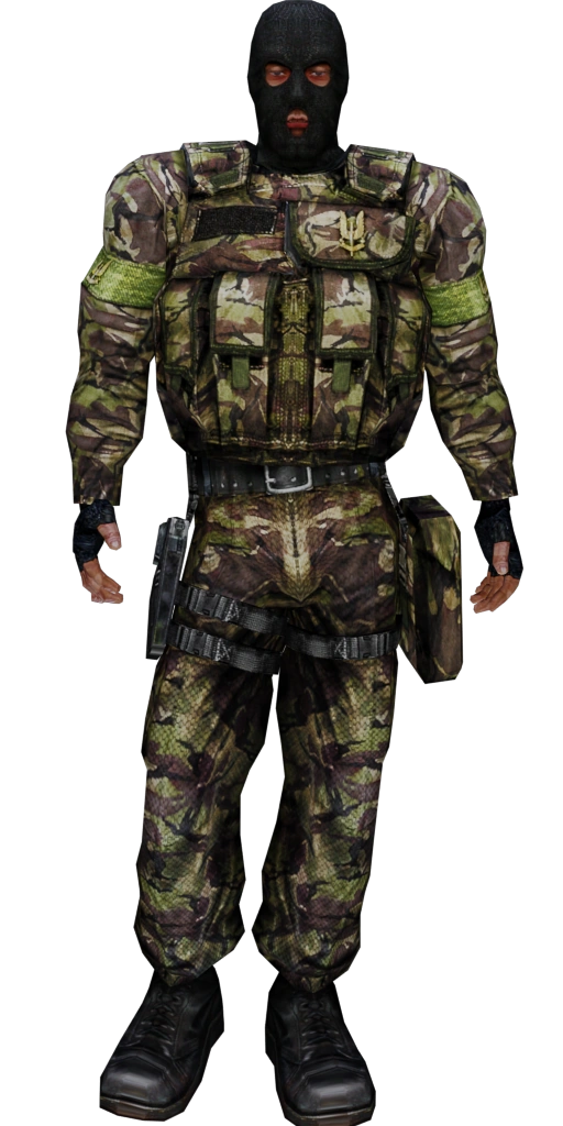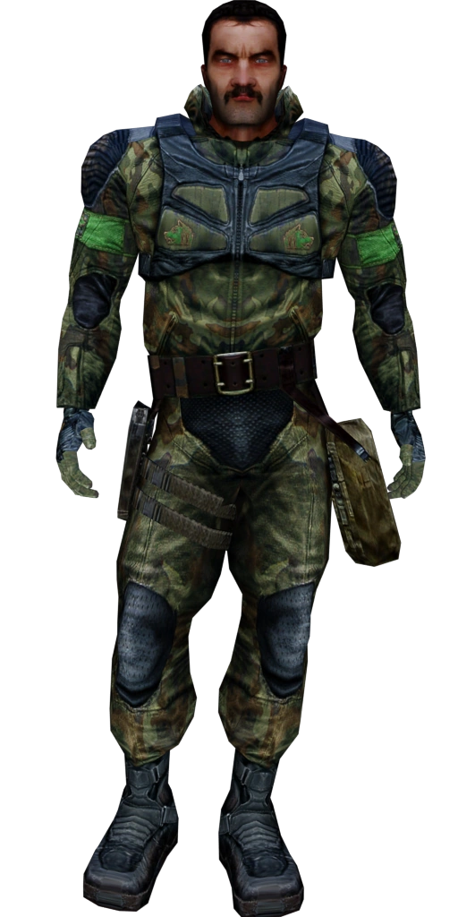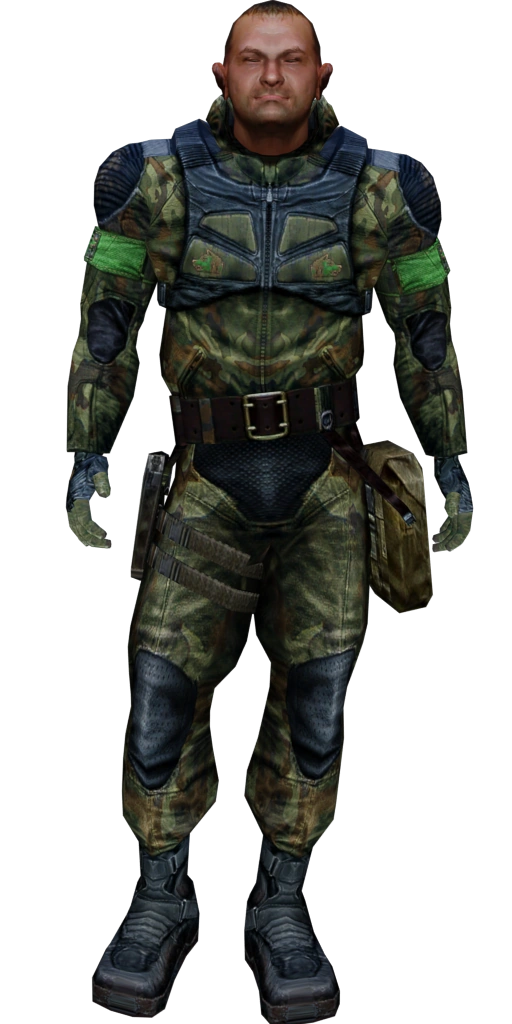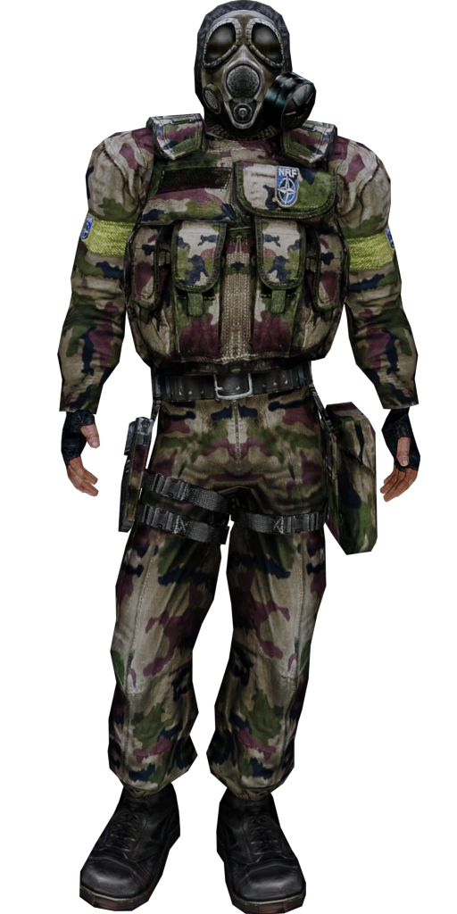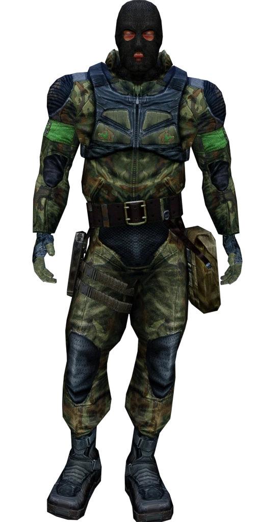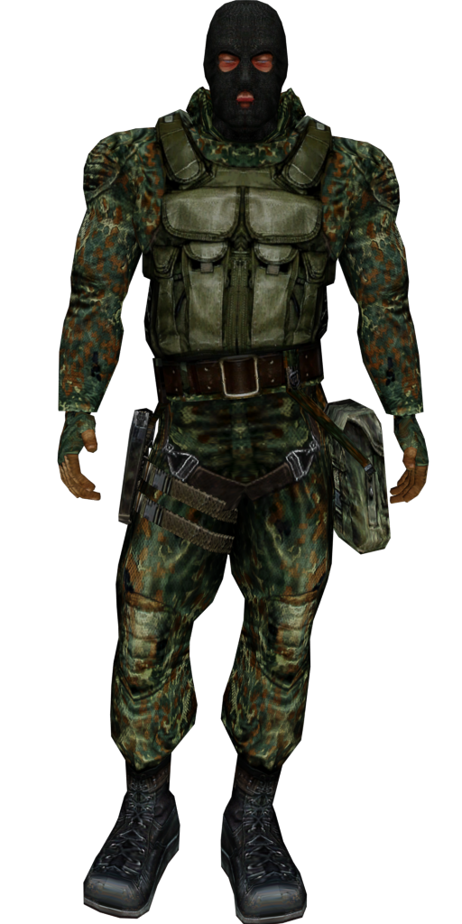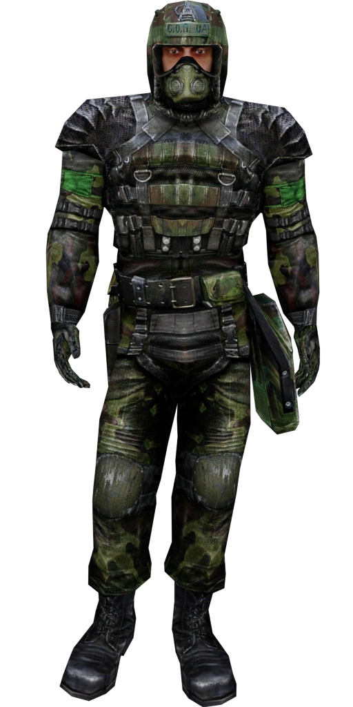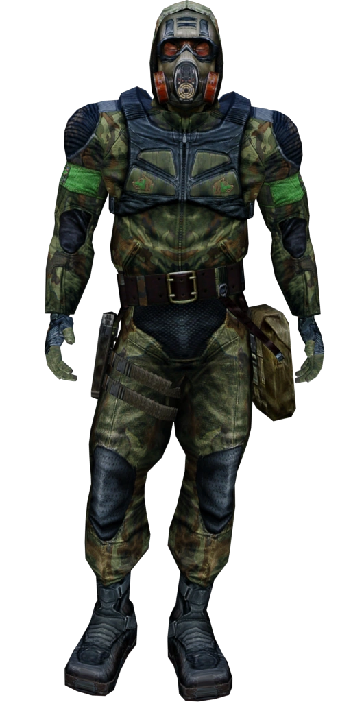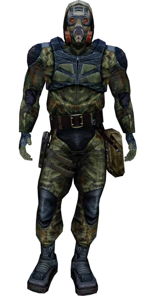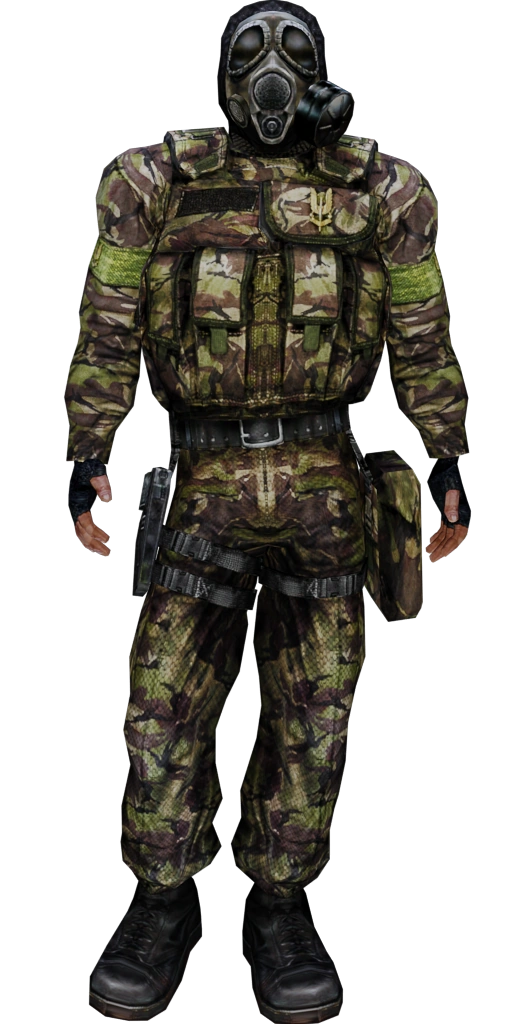 Experts are the fist of Freedom, armed with the best armaments and armours Freedom has to offer; they may spearhead assaults in the Zone, or act as guards for outposts in important or dangerous areas. Experts may wear either an Exoskeleton painted orange with green camouflaged fatigues, or the heavy Clear Sky model of the Guardian of Freedom suit (which resembles a Berill-5M Armoured Suit with flecktarn camouflage). Exoskeleton-clad Experts use the powerful and accurate SGI-5k, and also carry Energy drinks. Those who use the Guardian of Freedom will use the SVDm-2. They use armour piercing ammunition and F1 grenades. Their pistol of choice is the UDP Compact.