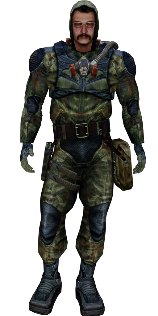 Random dialogue: "Did you know that Freedom is studying the Zone too? We're not scientists, that's true, but we also want to know what created this nature's miracle. Everything here is a gift to humanity: all these anomalies, artifacts and mysterious emissions. What were we talking about? Oh, yes, you asked me what I'm doing here. I'm collecting data for research - taking measurements of background radiation, temperature, humidity and noting the presence of monsters and anomalies... Now, if you don't mind, I'd like to get on with exactly that."