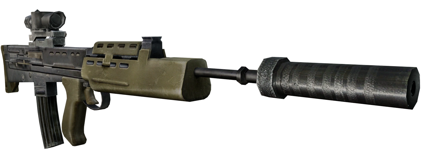 Weapon comes with an integrated muffler. Many parts are replaced with lighter analogues, which makes the weapon significantly lighter.