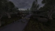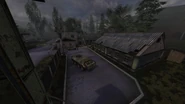 The layout is identical in both games, save for a machine gun nest on the watchtower in Clear Sky that for some reason isn't present in Shadow of Chernobyl. The checkpoint consists of a watchtower located on the side of the road, surrounded by two mobile stations, and an enclosed compound with a two story guardhouse, barracks and a parking lot. The road to the checkpoint is also surrounded by a minefield.