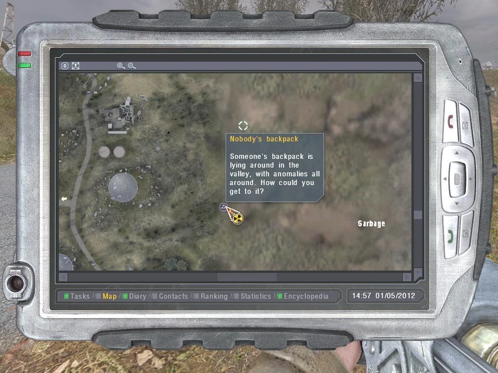 Nobody's backpack is a stash found in Garbage featured in S.T.A.L.K.E.R.: Shadow of Chernobyl.