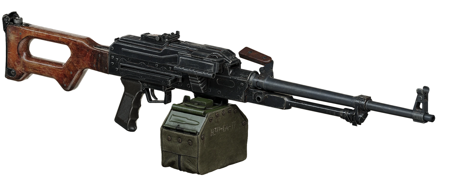 Despite its weight and low precision, this light machine gun has found admirers in the Zone. Used primarily to fight off superior enemy forces or clear out mutant lairs. Uses 7.62 PP ammo.