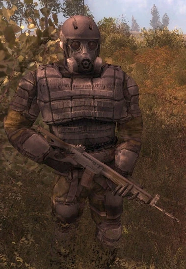 The radiation suit[1] is an armour appearing in S.T.A.L.K.E.R.: Clear Sky and S.T.A.L.K.E.R.: Call of Pripyat. It also appears in S.T.A.L.K.E.R.: Shadow of Chernobyl, but only as an integral component of the exoskeleton. The radiation suit itself is not available to the player in any game aside as a component of the exoskeleton.