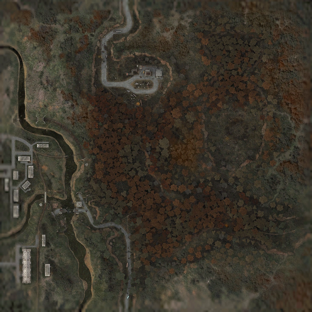 "Red Forest" is the name given to large areas of woodlands surrounding the Chernobyl Nuclear Power Plant, which turned into a ginger-brown color after the pine trees died when they absorbed high levels of ionizing radiation following the 1986 Chernobyl disaster. Forester, a well-known resident of the forest, has been living in the area for a long time, working as a park ranger. The Red Forest continued to flourish with wildlife until the emergence of the Zone in 2006, which caused wild animals to disappear; instead, mutants and anomalies became widespread within the forest.