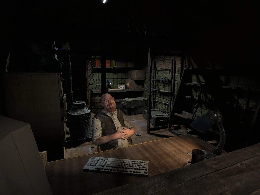 Originally, Sidorovich's bunker had much worse quality and the man himself had a wildly different appearance. Instead of the balding fat trader model, it was a fat, sweaty model with a pudgy face and bright blonde hair in a white tanktop, jeans, and missing his left hand and always carrying a shotgun. He was also known as "Toad"[2] or "The Dealer". In build 1537, he has a model.