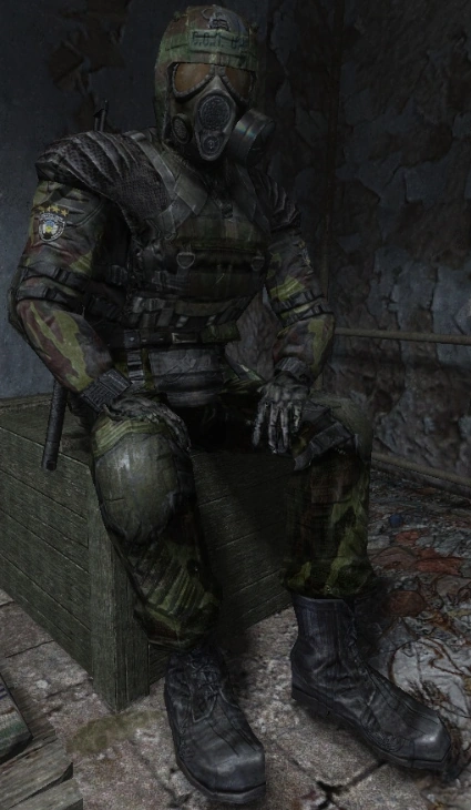 Valyushok is one of the survivors of Operation Fairway encountered in Pripyat. He is seen sitting near Ostrovsky in the upper floor of the Laundromat. Like most of the soldiers, he cannot be interacted with; instead, if the player attempts to speak with him, he will advise the player to speak to Kovalsky.